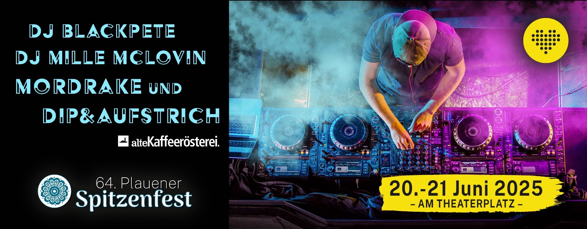 Samstag, 21. Juni: „Yo!Tube“-Crew mit Mordrake, Dip & Aufstrich (Hip Hop aus Plauen) | Dirty Blondes (Rock‘n‘Roll aus Prag) | Orange (Ethno, Elektro und World-Percussion aus Kempten) | Aftershow mit DJ Blackpete (Afrobeats, Hip Hop, Bass Music aus Plauen)