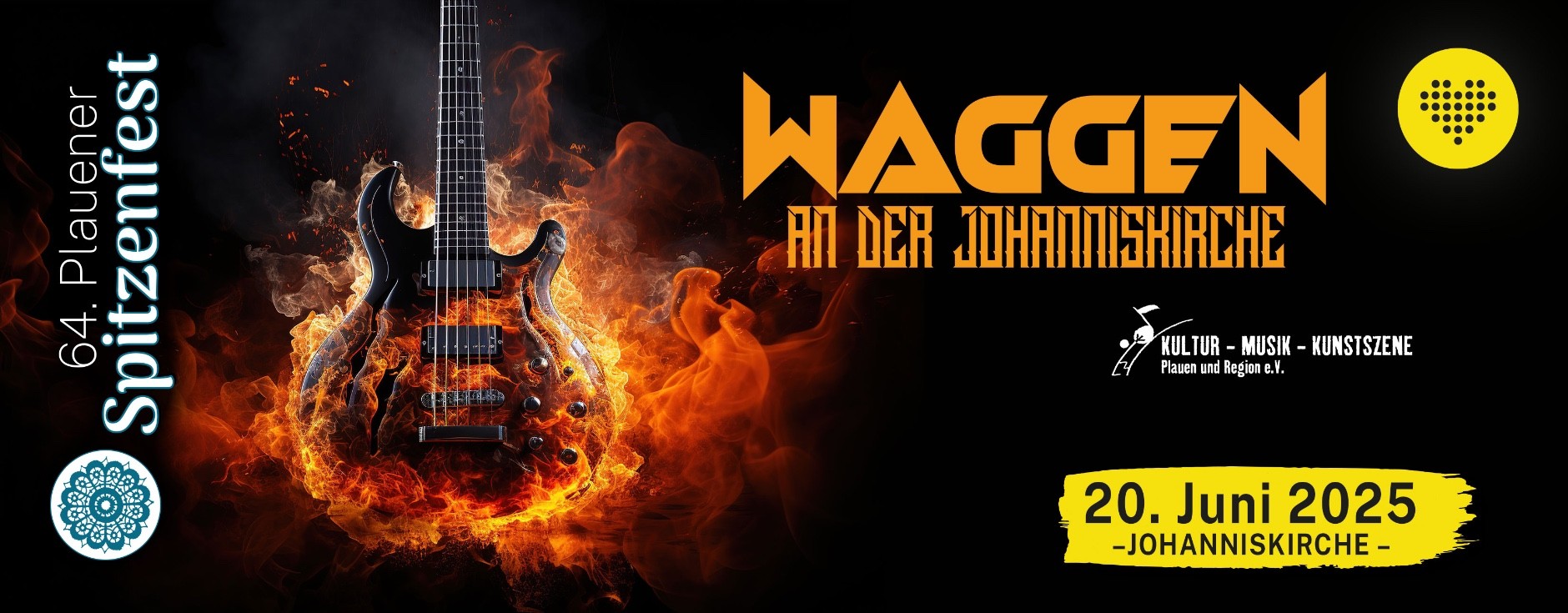 Bei WAGGEN an der Johanniskirche kommen am Freitag alle Metalfreunde voll auf ihre Kosten. Der "Kultur-Musik-Kunstszene Plauen und Region e.V." präsentiert euch Lunatic Machine (mit Einflüssen aus Rock, Heavy Metal, Stoner, Britpop) und Jara (Heavy Stoner Rock mit Crunge anleihen). Aus unserer Partnerstadt Siegen hat sich zudem OMEGA angekündigt. Eröffnet wird der Abend aber erst einmal stilecht von der Feuerwehrkapelle Kauschwitz, die bereits Kultstatus erreicht hat.
