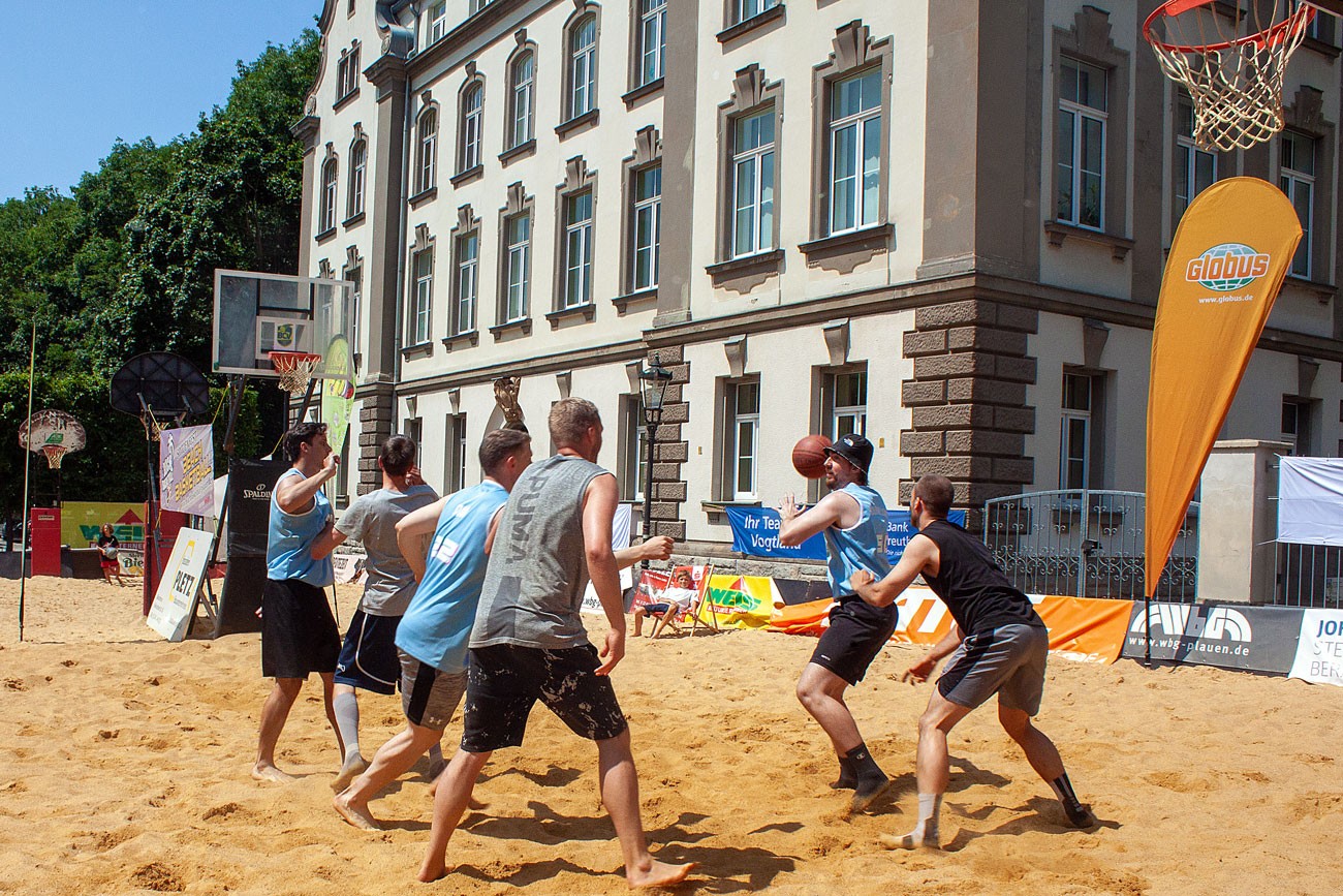 Der "Basketball Club Vogtland e.V." holt Basketball mitten ins Stadtleben! Das beliebte Beachbasketball-Turnier feiert in diesem Jahr 10-jähriges Jubiläum. Dank großzügiger Sponsoren verwandelt sich der Theaterplatz jährlich zum Spitzenfest in eine hochwertige Turnierlandschaft aus Sand.