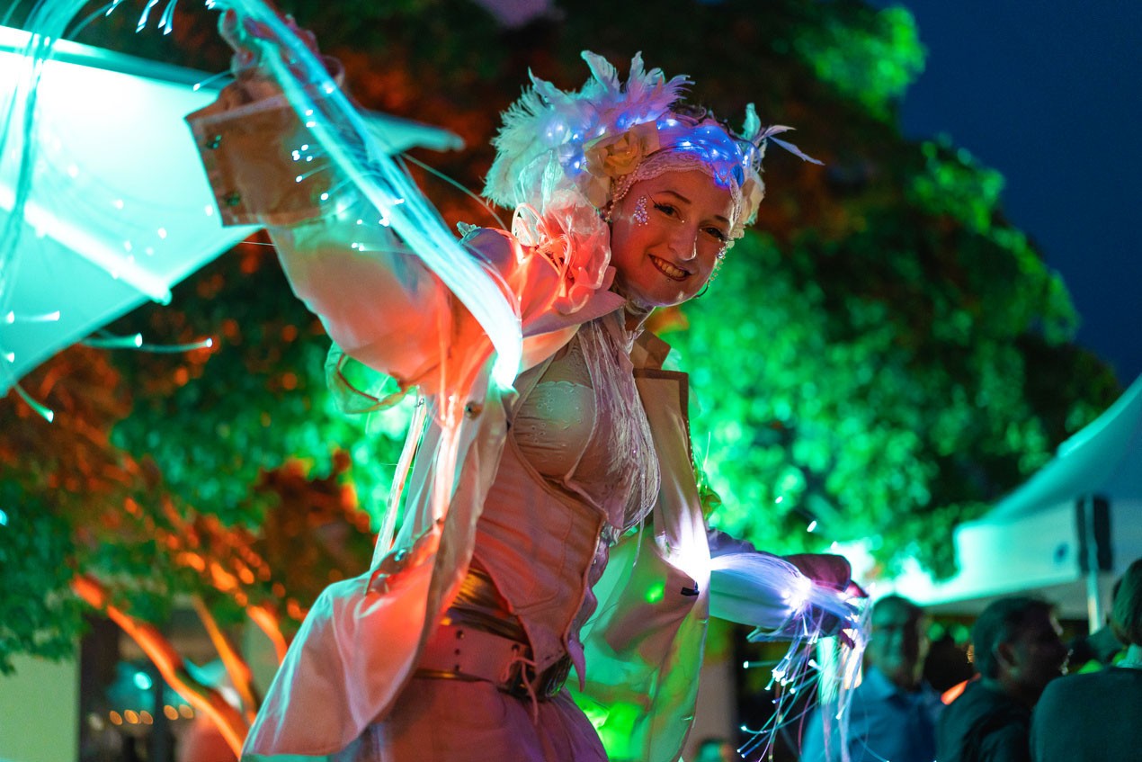 Bevor traditionell 22:30 Uhr das große Abschlussfeuerwerk den krönenden Abschluss setzen wird, dürfen sich die Gäste ab 22:15 Uhr auf eine LED-Show mit faszinierenden Gewändern und Lichteffekten des Kollektivs Entourage Berlin auf der Altmarktbühne freuen. Danach werden die Lichtkünstler mit beeindruckenden Kostümen auf dem Marktplatz für Faszination und Aufmerksamkeit sorgen.